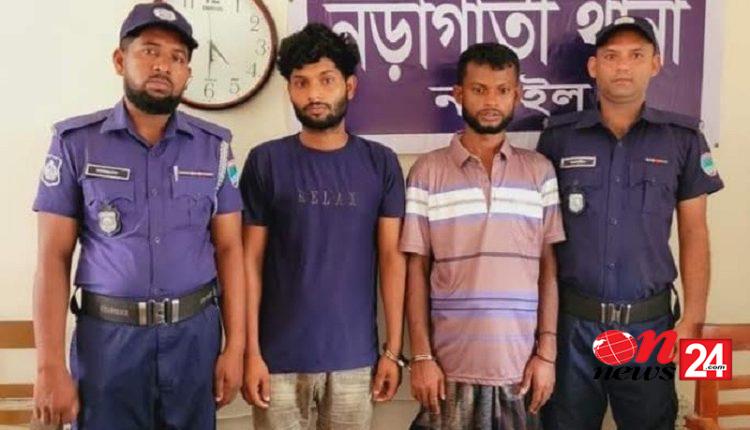 সোমবার (২৪ জুন) সকালে তাদেরকে গ্রেপ্তার করা হয়। গ্রেপ্তারকৃত রফিকুল ইসলাম জেলার নড়াগাতী থানার পহরডাঙ্গা গ্রামের মুস্তাইন শেখের ছেলে ও আবুল হাসান একই গ্রামের মো. বরকত শেখের ছেলে।
