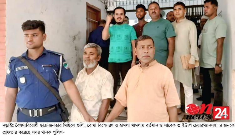 নড়াইলে ছাত্র-জনতার মিছিলে হামলা মামলায় বর্তমান ও সাবেক ৩ ইউপি চেয়ারম্যানসহ গ্রেফতার ৪