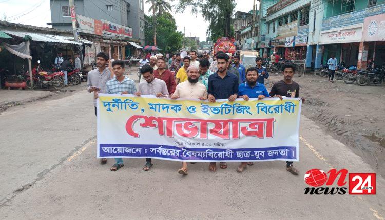 শোভাযাত্রা শেষে মডেল মসজিদ প্রাঙ্গণে সংক্ষিপ্ত সমাবেশ অনুষ্ঠিত হয়। সমাবেশে বৈষম্যবিরোধী ছাত্র আন্দোলনের সাবেক সদস্য সচিব মো. শাফায়াত উল্লাহ’র সঞ্চালনায় প্রধান অতিথি হিসেবে বক্তব্য রাখেন সামাজিক সংগঠক ও তরুণ কবি মিনহাজুল ইসলাম। তিনি বলেন, জুলাই অভ্যুত্থান পরবর্তী বাংলাদেশে আমাদের প্রত্যাশা ছিল সারাদেশ দুর্নীতি, মাদক ও ইভটিজিংমুক্ত হবে। তবে সে আশা ভঙ্গ হয়েছে। এখন এসব অপকর্মের হাতবদল হয়েছে মাত্র। তবে আমরা হুঁশিয়ার করে বলে দিচ্ছি, আমরা ছাত্র-যুবজনতা কিন্তু ঘুমিয়ে যাইনি। আমরা রাজপথে সজাগ রয়েছি।