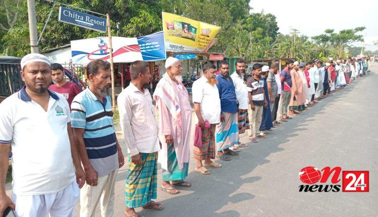 মানববন্ধনে ইমাম সমতিরিি সদস্যবৃন্দ, গ্রামরে গণ্যমান্য ও স্থানীয় ব্যক্তর্বিগ