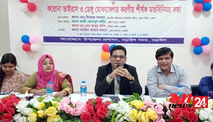 নড়াইলে মতবিনিময় সভায় খুলনা বিভাগীয় কমিশনার মোঃ ফিরোজ সরকার করোনা ও ডেঙ্গুসহ মশাবাহিত রোগ প্রতিরোধে জনসচেতনতা বাড়াতে হবে