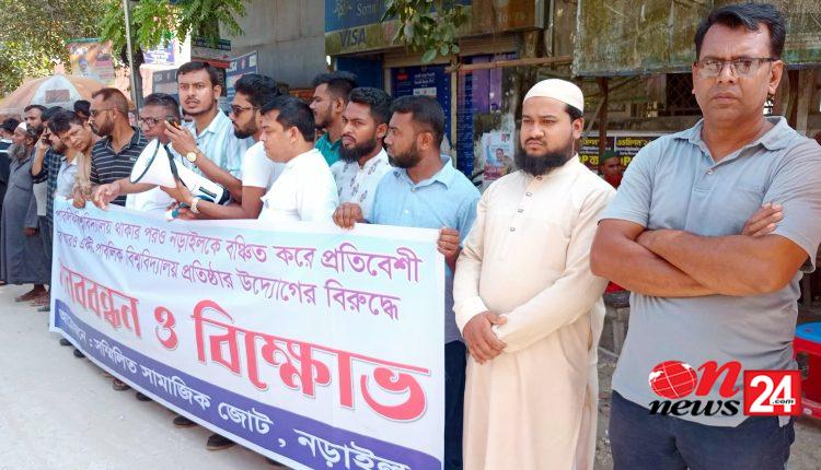 রবিবার (২৬ অক্টোবর) সকাল ১০ টায় সম্মিলিত সামাজিক জোটের ব্যানারে নড়াইল জেলা প্রশাসকের কার্যালয়ের সামনে এ মানববন্ধন অনুষ্ঠিত হয়েছে। মানববন্ধন শেষে জেলা প্রশাসকের মাধ্যমে প্রধান উপদেষ্টা বরাবর স্মারকলিপি দেয়া হয়।