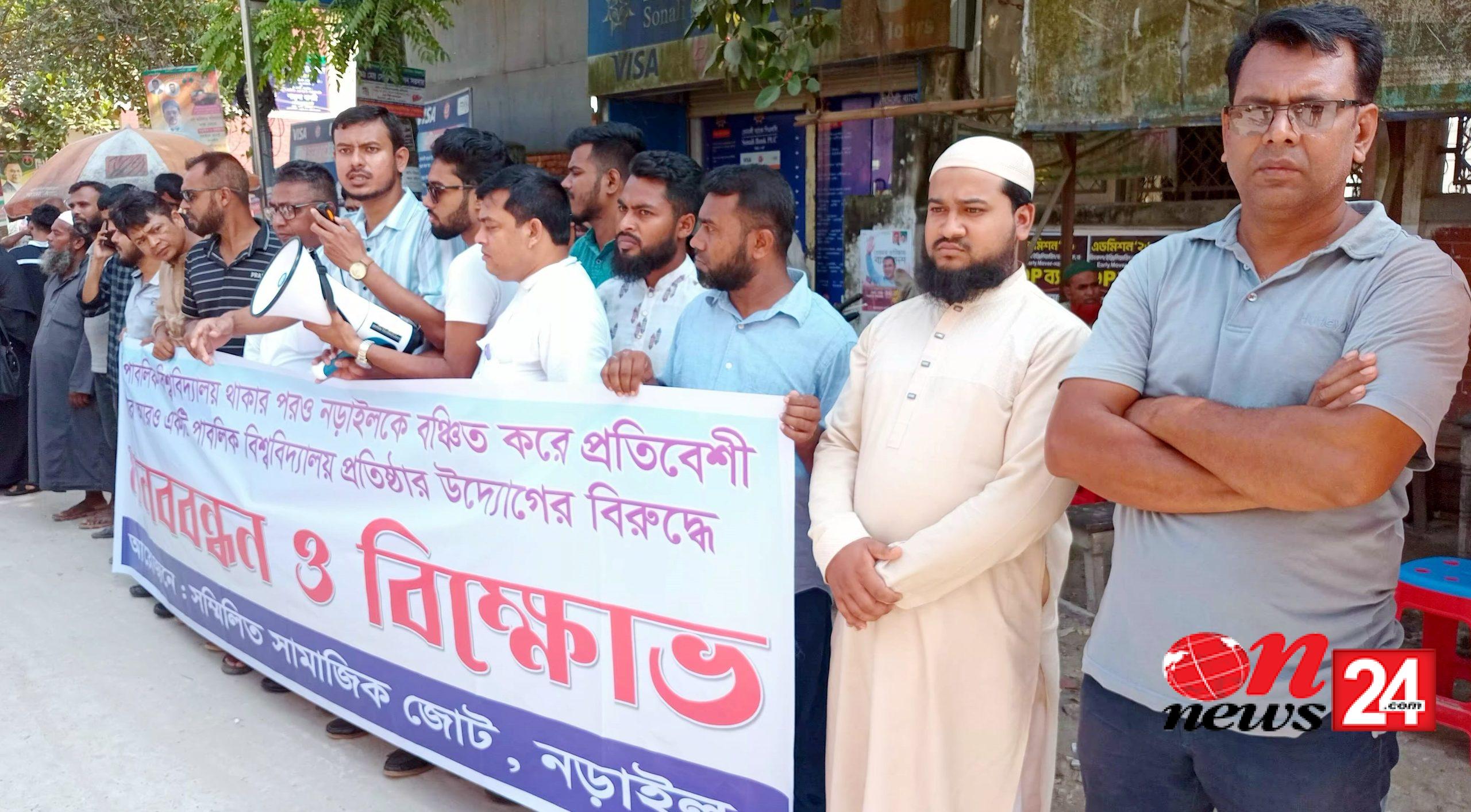 অর্ন্তবর্তীকালীন সরকারের বাণিজ্য উপদেষ্টা শেখ বশির উদ্দিন যশোরে আরও একটি কৃষি বিশ্ববিদ্যালয় প্রতিষ্ঠার উদ্যোগ নেওয়ার জন্য শিক্ষা মন্ত্রণালয়ে চিঠি দিয়েছেন। এখনও নড়াইলকে বঞ্চিত করা হয়েছে। বক্তারা , অবহেলিত নড়াইল জেলায় একটি পাবলিক বিশ্ববিদ্যালয় ও একটি মেডিকেল কলেজ প্রতিষ্টার জোর দাবি জানান। দাবি বাস্তবায়ন না হলে আগামীতে অবরোধসহ কঠোর আন্দোলন কর্মসূচি ঘোষণা করা হবে।’