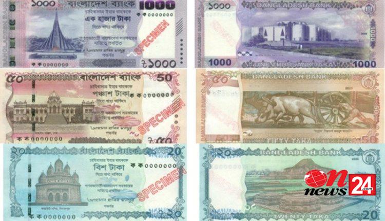 আগামী ১ জুন থেক বাজারে আসছে ১০০০, ৫০ ও ২০ টাকা মূল্যমানের নতুন নোট। নতুন এই নোটে শেখ মুজিবুর রহমানের ছবি থাকবে না। গভর্নর ড. আহসান এইচ মনসুর স্বাক্ষরিত নতুন ডিজাইন ও সিরিজের এসব নোট প্রাথমিকভাবে বাংলাদেশ ব্যাংকের মতিঝিল অফিস থেকে এবং পরবর্তীতে বাংলাদেশ ব্যাংকের অন্যান্য অফিস থেকে ইস্যু করা হবে।