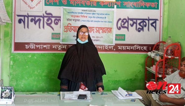 নান্দাইলে মুক্তিযোদ্ধার স্ত্রীর দখলে নেওয়া জমি ফেরতের দাবীতে সংবাদ সম্মেলন