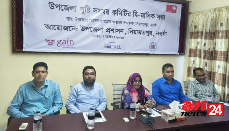 নওগাঁর নিয়ামতপুর উপজেলায় পুষ্টি সমন্বয় কমিটির দ্বি মাসিক সভা অনুষ্ঠিত হয়েছে।