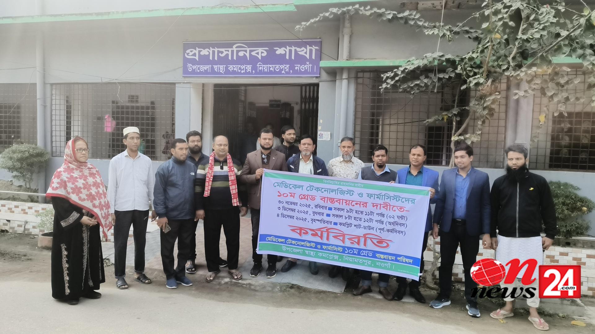 নিয়ামতপুরে মেডিকেল টেকনোলজিস্ট ও ফার্মাসিস্টদের কর্মবিরতি শুরু