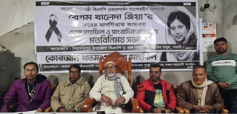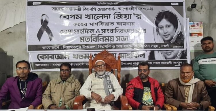 সাবেক প্রধানমন্ত্রী বিএনপি চেয়ারপার্সন আপোষহীন দেশনেত্রী বেগম খালেদা জিয়ার রুহের মাগফিরাত কামনায় নওগাঁর নিয়ামতপুরে সাংবাদিকদের সাথে বিএনপির মনোনয়ন প্রার্থী মোস্তাফিজুর রহমানের সাথে মতবিনিময় সভা ও দোয়া মাহফিল অনুষ্ঠিত হয়েছে।