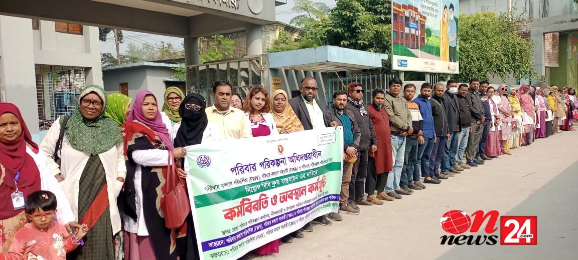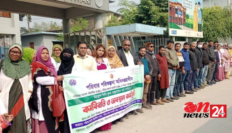 নিয়োগ বিধি বাস্তবায়নের দাবীতে পরিবার পরিকল্পনা বিভাগের কর্মীদের মানববন্ধন