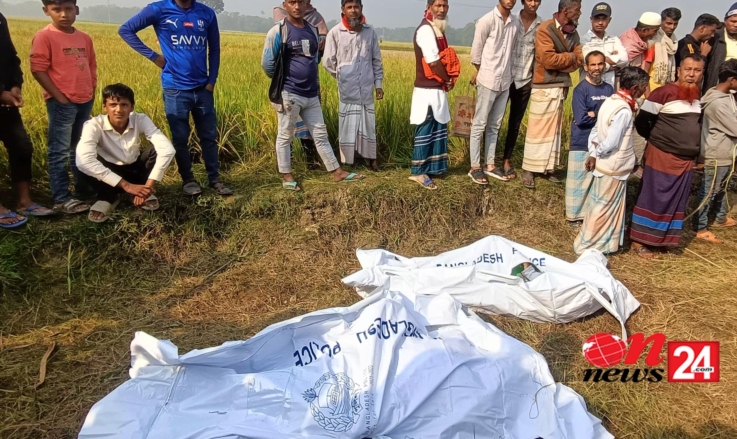স্থানীয় আরিফ হোসেন ও আব্দুর রহিম বলেন, সকাল ৭ টায় আমার শুনতে পাই লাশের খরব। পরে জালায় এসে দেখি লাশ। ধানক্ষেতের পাশের একটি খালি জায়গায় খর বিছানো। খরের উপর হয়ে পড় আছে দুটি লাশ।