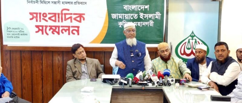 নির্বাচনী মিছিলে হামলার অভিযোগ, সুষ্ঠু নির্বাচন নিশ্চিত করার আহবান- কুমিল্লা-০৬ আসনের জামায়াত প্রার্থীর সংবাদ সম্মেলন