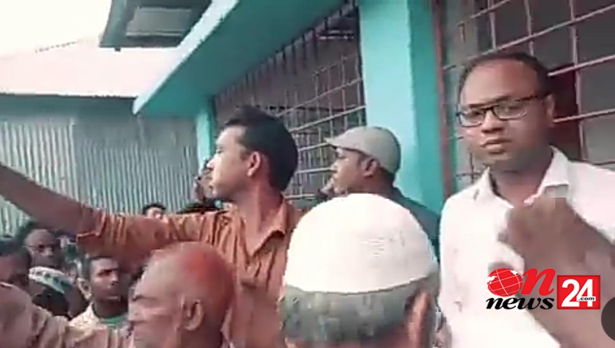 এলাকাবাসী উপজেলা নির্বাহী কর্মকর্তা ও জেলা প্রশাসক এর নিকট বিচার চেয়ে ভূমি অফিসের কক্ষে আটকে রাখেন ভূমি উপ সহকারি নুর আলমকে ।