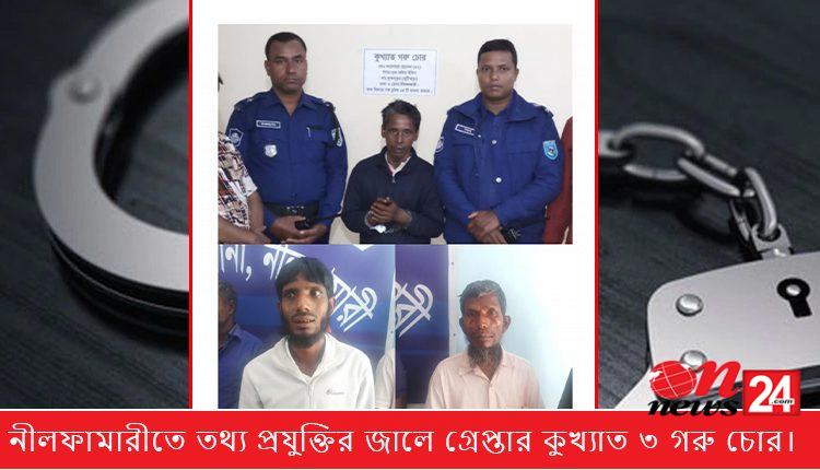 তথ্য প্রযুক্তি ব্যবহারের মাধ্যমে বিশেষ অভিযান পরিচালনা করে একাধিক মামলার আসামি কুখ্যাত ৩ জন গরু চোর কে গ্রেপ্তার করেছে নীলফামারী জেলা পুলিশের একটি অভিযানিক দল।