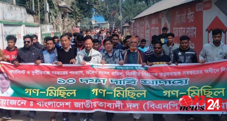 জেলা কৃষকদলের আহবায়ক মগনি মাসুদুল আলম দুলাল এর নেতৃত্বে একটি মিছিল পাঁচ মাথা থেকে চৌরঙ্গী মোড় আসলে, পুলিশ ধাওয়া করে ছত্রভঙ্গ করে দেয় নেতা-কর্মীদের।