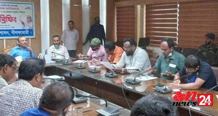 মুজিব শতবর্ষ ও পবিত্র ঈদ উপলক্ষে প্রধানমন্ত্রী কর্তৃক ভূমিহীন ও গৃহহীন পরিবারের মাঝে আগামীকাল তৃতীয় পর্যায়ে নীলফামারী জেলার ৬ উপজেলায় জমি সহ গৃহ ১২শ ৫ পরিবারের কাছে হস্তান্তর উপলক্ষে (২৫শে এপ্রিল সোমবার) দুপুর ১২ টায় জেলা প্রশাসকের সম্মেলন কক্ষে সাংবাদিক সম্মেলন অনুষ্ঠিত হয়।