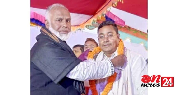 নৌকার প্রার্থীকে বিজয়ী করায় চেয়ারম্যান জিন্নাহকে ফুলের মালা দিয়ে বরণ করে নিলেন আলাউদ্দিন
