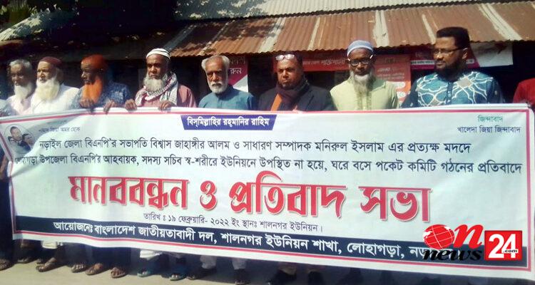 বক্তারা বলেন, বিএনপির কেন্দ্রীয়য় কমিটির নির্দেশনা না মেনে লোহাগড়া উপজেলা বিএনপির আহবায়ক জিএম নজরুল ইসলাম ও সদস্য সচিব কাজী সুলতানুজ্জামান সেলিম ঘরে বসে তাদের পছন্দমতো ১২টি ইউনিয়নের পকেট কমিটি ঘোষণা করেছেন। কমিটি গঠন করে ফেসবুকে ছেড়েছেন। এসব কমিটি গঠনের ক্ষেত্রে দলের গঠনতন্ত্রের নিয়ম-নীতি মানা হয়নি। দীর্ঘদিন ধরে আওয়ামীলীগ ও পুলিশের নির্যাতনের শিকার এবং ত্যাগী ও যোগ্য নেতাদের মূল্যায়ন করা হয়নি। এক্ষেত্রে জেলা বিএনপির সভাপতি বিশ্বাস জাহাঙ্গীর আলম ও সাধারণ সম্পাদক মনিরুল ইসলামের মদদ রয়েছে। এ অবৈধ পকেট কমিটি আমরা মানি না।