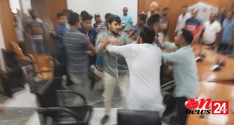 একই সময় জেলা প্রশাসকের হলরুমের পুর্বপাশে স্বতন্ত্র চেয়ারম্যান প্রার্থী সৈয়দ ফয়জুল আমীর লিটুর প্রস্তাবকারী বীর মুক্তিযোদ্ধার সন্তান কাশিপুর ইউনিয়নের সদস্য মোঃ শরিফুল ইসলাম ও সমর্থনকারী নোয়াগ্রাম ইউনিয়নের ৫নং ওয়ার্ডের সদস্য সৈয়দ নওয়াব আলীর ওপর হঠাৎ করে হামলা চালায় আওয়ামীলীগ সমর্থিত প্রার্থী সুবাস চন্দ্র বোসের সমর্থকরা।