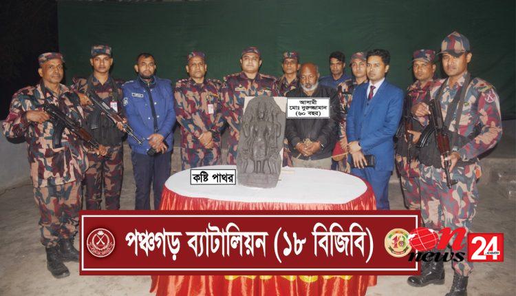 পঞ্চগড় সদর উপজেলায় বর্ডার গার্ড বাংলাদেশ সদস্যরা ম্যাজিস্ট্রেট ও থানা পুলিশকে সাথে নিয়ে টাস্কফোর্স অভিযান পরিচালনা করে প্রায় ২৫ লাখ টাকা মূল্যর একটি কষ্টিপাথর উদ্ধার করেছে। একই সময় নুরুজ্জামান এসেন (৬০) নামে এক ব্যক্তিকে আটক করা হয়।