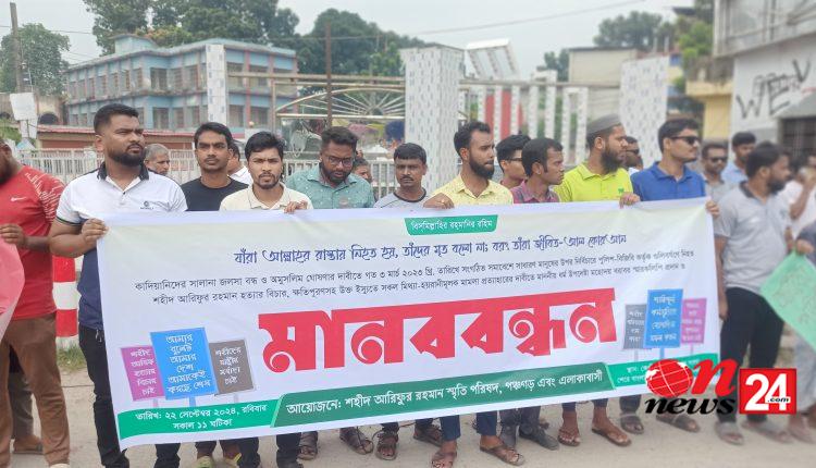 পঞ্চগড়ে শহীদ আরিফ হত্যার বিচারের দাবীতে মানববন্ধন অনুষ্ঠিত হয়েছে।