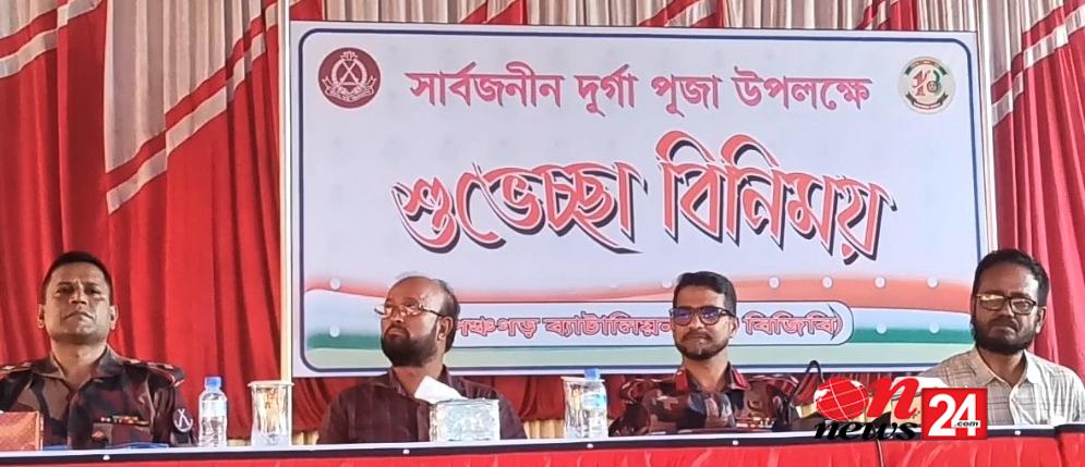 পঞ্চগড়ের সদর উপজেলায় শারদীয় দূর্গাপূজা উপলক্ষে সীমান্তবর্তী এলাকার পূজামন্ডব কর্তৃপক্ষ ও সনাতন ধর্মাবলম্বীদের সাথে বিজিবির শুভেচ্ছা বিনিময় অনুষ্ঠিত হয়েছে।