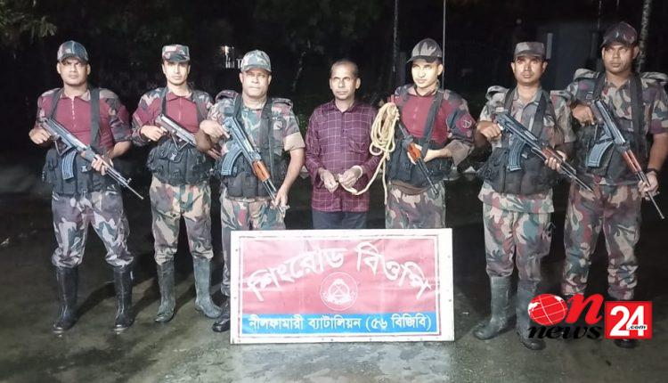 বৃহস্পতিবার (২৬ সেপ্টেম্বর) রাত ৮টা ৪০ মিনিটে পঞ্চগড় সদর উপজেলার চাকলাহাট ইউনিয়নের শিংরোড বিওপির সদস্যরা তাকে আটক করে।