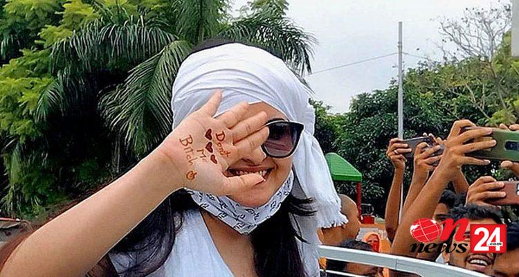 কাশিমপুর কারাগার থেকে বেরোনোর সময় পরীমনির হাতে মেহেদিতে লেখা একটি ইংরেজি বাক্য দৃষ্টি কাড়ে অনেকের। ‘ডোন্ট লাভ মি বিচ’। এটি একটি ইংরেজি গানের লাইন।