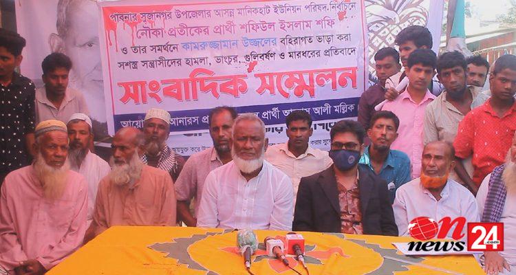 পাবনায় চেয়ারম্যান প্রার্থীর উপর সন্ত্রাসী হামলার প্রতিবাদে সংবাদ সম্মেলন