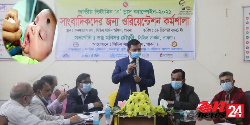 পাবনায় জেলা সিভিল সার্জন কার্যালয়ে জাতীয় ভিটামিন 'এ ' প্লাস ক্যাম্পইন ও ওরিয়েন্টেশন কর্মশালা কার্যক্রম এর আয়োজন করা হয় ।০৯ ডিসেম্বর বৃহঃবার দুপুরে জেলা সিভিল সার্জন কার্যালয়ের কনফারেন্স রুমে এই অনুষ্ঠানের আয়োজন করা হয়।