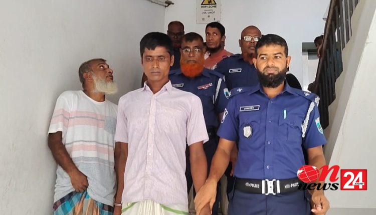 আসামিদের মধ্যে জগনাথপুর গ্রামের আবুল কালাম (৩৫) পিতা আবুল কাশেম, মোকছেদ আলী (৪৫) পিতা লোকমান, মুক্তার হোসেন (৩৫) পিতা ফজলু তিনজন উপস্থিত ছিলেন, বাকি দুজন রাজনারায়ন পুর গ্রামের আপেল মাহমুদ(৪১) পিতা বাছেদ ও জাহিদ পিতা মজিদ (৫০)পলাতক রয়েছে।