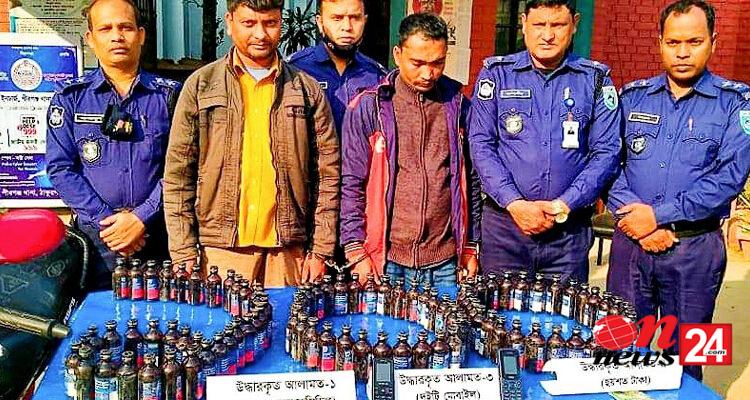 এ সময় তারা মোটর সাইকেল ফেলে পালিয়ে যাওয়ার চেষ্টা করে। পুলিশ ধাওয়া দিয়ে তাদের আটক করে এবং ঐ মোটর সাইকেলে থাকা দু’টি ব্যাগ তল্লাসী করে ৬০ বোতল ফেন্সিডিল উদ্ধার করে। ফেন্সিডিল ও মোটর সাইকেল সহ তাদের থানায় নেয়া হয়।