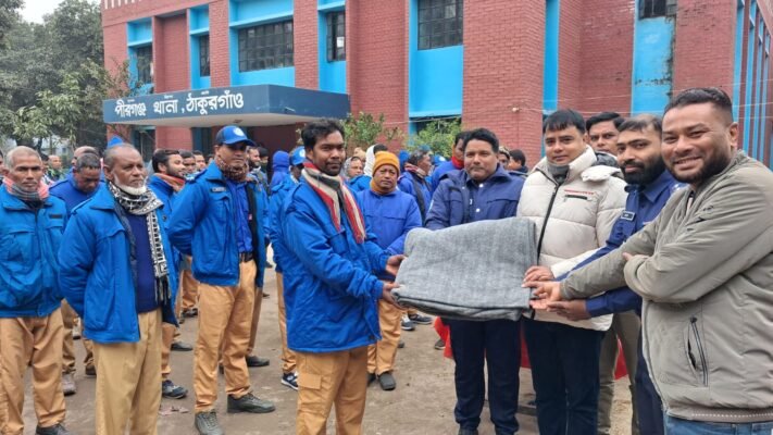 পীরগঞ্জ থানার উদ্যোগে গ্রাম্য পুলিশের মাঝে কম্বল বিতরণ
