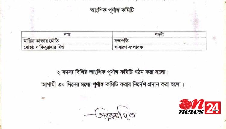 সাধারণ সম্পাদক মো: শফিকুল ইসলাম শফিক জানান, ২ সদস্য বিশিষ্ট আংশিক পুর্নাঙ্গ কমিটি অনুমোদন করা হয়েছে । সেই সাথে আগামী ৩০ দিনের মধ্যে পুর্নাঙ্গ কমিটি করার নির্দেশনা দেওয়া হয়েছে।