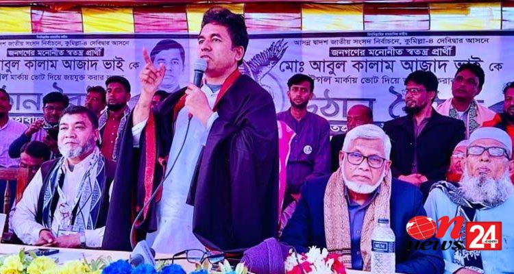 উঠান বৈঠকে আবুল কালাম আজাদ বলেন, এবারের নির্বাচন হবে বিদ্যুতের নামে কোটি কোটি টাকা আত্মস্বাৎকারীদের বিরোদ্ধে, জিবির নামে কোটি টাকার চাঁদাবাজদের বিরোদ্ধে, গোমতীর মাটি লুটেরাদের বিরোদ্ধে।