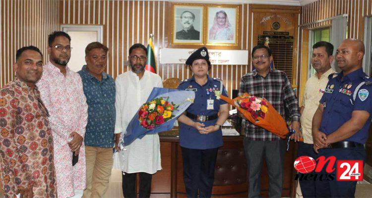 প্রেসক্লাবের নব নির্বাচিতদের ফুলের তোড়া দিয়ে বরণ করলেন পুলিশ সুপার মুক্তাধর
