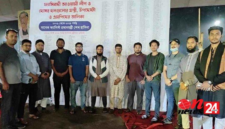 জুলাই গণহত্যা সংঘটিত করে গণপ্রতিরোধের মুখে পালিয়ে যাওয়া প্রধানমন্ত্রী শেখ হাসিনা, তার দল আওয়ামী লীগ ও দোসর রাজনৈতিক দলগুলোর মন্ত্রী, উপদেষ্টা ও এমপিদের ফ্যাসিবাদী ঘোষণা করে তালিকা প্রকাশ করেছে ফ্যাসিবাদ নিষিদ্ধের দাবিতে ঢাকা বিশ্ববিদ্যালয়ের রাজু ভাস্কর্যে গণঅবস্থানকারী ছাত্রজনতা। তারা বলছে, তালিকাভুক্তদের গ্রেপ্তার করে ৭ থেকে ১৪ বছরের কারাদণ্ড প্রদান করতে হবে। এমনকি তাদের নির্বাচন করার অধিকারও বাতিল করতে হবে।
