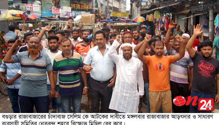 বগুড়ার রাজাবাজারে চাঁদাবাজ সেলিম কে আটকের দাবীতে বিক্ষোভ মিছিল
