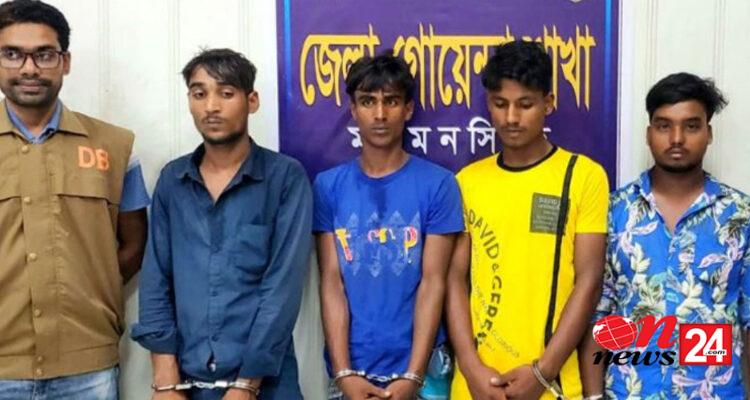 ডিবি ওসি সফিকুল জানান, গ্রেফতারকৃতরা হলেন- উপজেলার দাদরা এলাকার মো. আলাল উদ্দিনের ছেলে মো. রবিন মিয়া (১৯), তার বড় ভাই মো. রোহান মিয়া (২৪), হাটপাড়া গ্রামের মো. মুস্তাফিজুর রহমান নাঈম (১৯), পঙ্গুয়াই গ্রামের মো. শাহীনুর ইসলাম (২২)। বুধবার দুপুরে গ্রেফতারকৃতদের আদালতে পাঠানো হয়েছে।