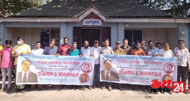 বসুন্ধরা গ্রুপের ব্যবস্থাপনা পরিচালক (এমডি) ও শেখ রাসেল ক্রীড়া চক্র লিমিটেডের চেয়ারম্যান সায়েম সোবহান আনভীরকে হত্যাচেষ্টার পরিকল্পনাকারী হুইপ সামসুল হক চৌধুরী ও তার পুত্রকে গ্রেপ্তারের দাবিতে প্রতিবাদ, মানববন্ধন ও বিক্ষোভ করেছে সোনারগাঁয়ের প্রিন্ট ও ইলেকট্রিক মিডিয়ার গণমাধ্যমকর্মী, উপজেলা শুভসংঘ ও এলাকাবাসী।
