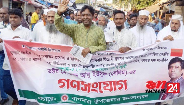 বাগমারায় গণতন্ত্র মঞ্চের এমপি প্রার্থী ড. সেলিমের প্রচার মিছিল