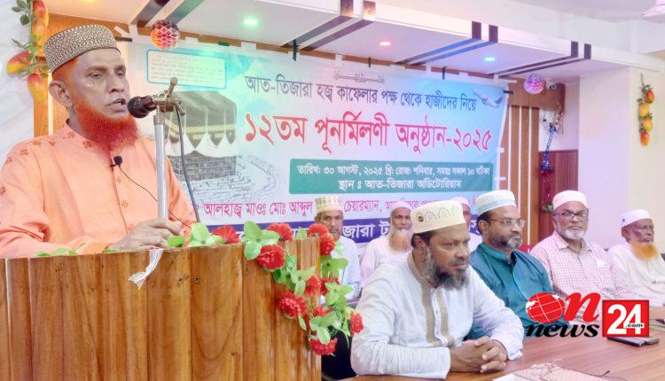 বাগমারায় দেশ ও জাতির মঙ্গল কামনায় বিশেষ দোয়া ও আলোচনা সভার মধ্যদিয়ে দুই দিনব্যাপী ১২ তম হাজী পুনর্মিলনী অনুষ্ঠান- ২০২৫ সমাপ্ত হয়েছে। গত শনিবার থেকে ভবানীগঞ্জস্থ আত-তিজারা অডিটোরিয়ামে আত-তিজারা হজ¦ কাফেলার পক্ষ থেকে এই হাজী পুনর্মিলনী অনুষ্ঠানের আয়োজন করা হয়। এ উপলক্ষ্যে আলোচনা সভায় পবিত্র হজে¦র গুরুত্ব ও তাৎপর্য তুলে ধরে বক্তব্য দেন- আত-তিজারা গ্রæপ অফ কোম্পানীজ এর চেয়ারম্যান ও রাজশাহী বিভাগীয় শ্রেষ্ঠ সমবায়ী সংগঠক আলহাজ¦ মাওলানা মোহাম্মদ আব্দুল হালিম। অনুষ্ঠানে অন্যদের মধ্যে বক্তব্য দেন- বাগমারা আসনে জামায়াতের এমপি প্রার্থী ও ভবানীগঞ্জ ক্লিনিকের পরিচালক বিশিষ্ট সমাজসেবক ডা. আব্দুল বারী, পুঠিয়া-দুর্গাপুর আসনে জামায়াতের এমপি প্রার্থী বিশিষ্ট শিল্পপতি ও সমাজসেবক নুরুজ্জামান লিটন, যুগান্তর ও দৈনিক সোনালী সংবাদের বাগমারা প্রতিনিধি আলহাজ¦ আবু বাককার সুজন, অবসরপ্রাপ্ত উপজেলা মাধ্যমিক শিক্ষা কর্মকর্তা মোস্তাফিজুর রহমান, জামায়াতের রাজশাহী জেলা শাখার মজলিশে শূরা ও কর্মপরিষদ সদস্য আব্দুল আহাদ কবিরাজ, অধ্যক্ষ মজনু মোহাম্মদ, সাবেক অধ্যক্ষ কাজী সাফিউল আলম, উপাধ্যক্ষ আবু ইমরান মোহাম্মদ জিয়াউর রহমান, উপাধ্যক্ষ নুরুল ইসলাম, প্রধান শিক্ষক আবু সামা ও অবসরপ্রাপ্ত শিক্ষক আব্দুস সামাদ প্রমূখ। অনুষ্ঠান সঞ্চালনা করেন আত-তিজারা গ্রæপ অফ কোম্পানীজ এর ডাইরেক্টর অ্যাডমিন শাহাদৎ হোসাইন। দোয়া ও আলোচনা সভা শেষে সকল হাজী ও আমন্ত্রিত অতিথিদের সম্মানে মধ্যহ্ন ভোজের আয়োজন করা হয়।