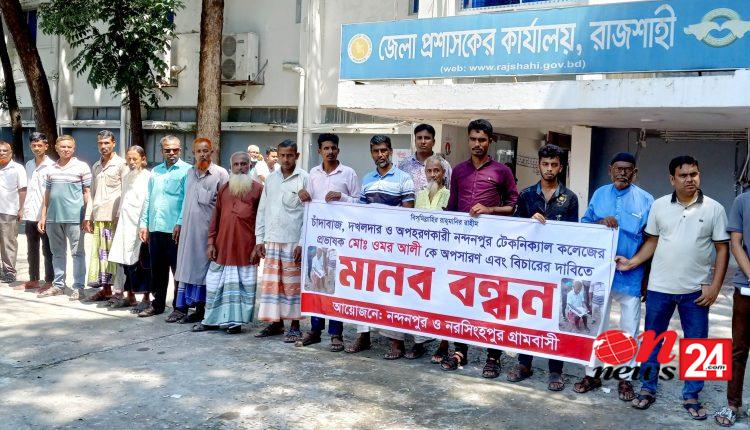 বাগমারার কারাবন্দি প্রভাষক ওমর আলীর শাস্তি ও বরখাস্তের দাবিতে মানববন্ধন