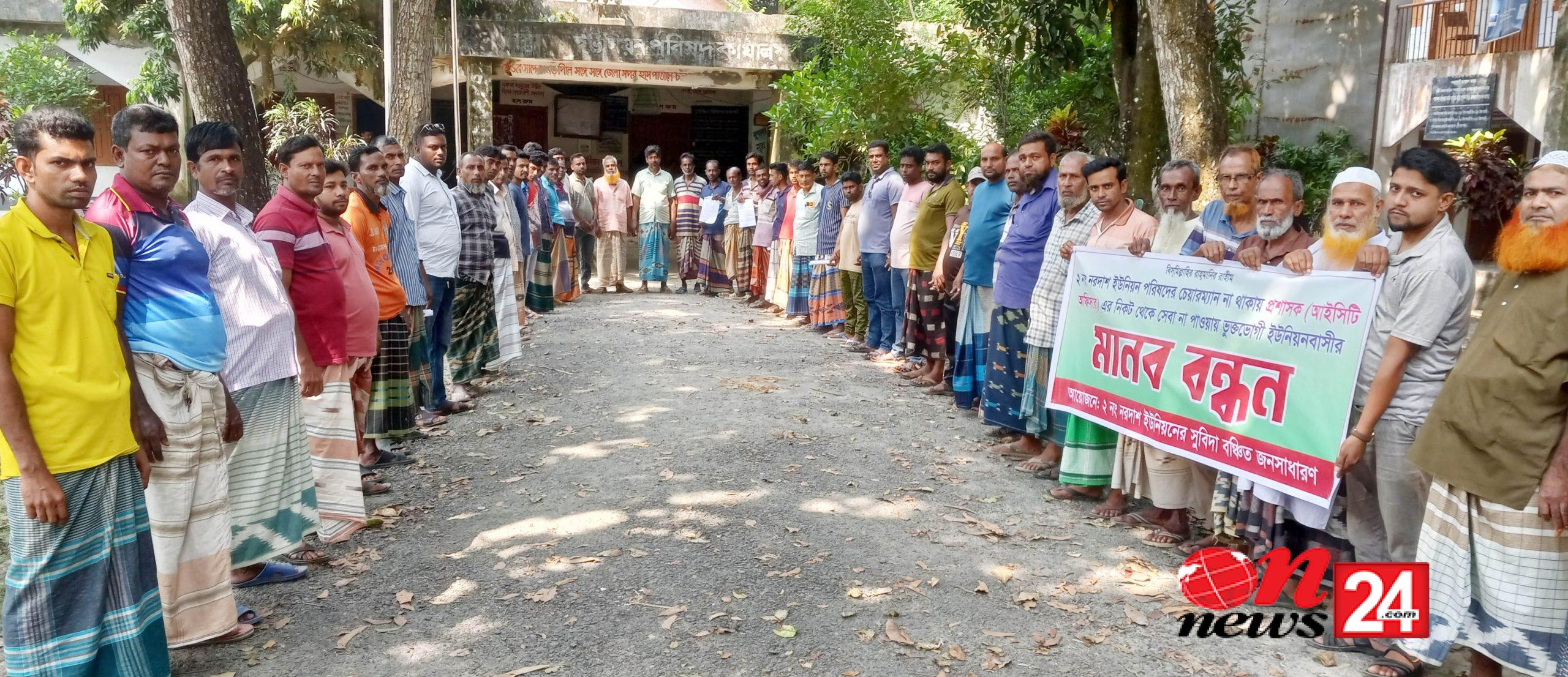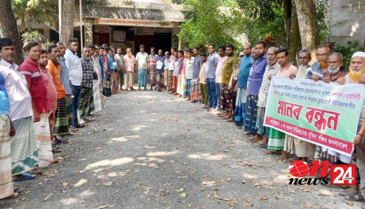 বাগমারার নরদাশ ইউপির প্রশাসক তাজরুল ইসলামের পদত্যাগ দাবিতে মানববন্ধন