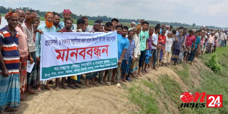 বাগমারার বিলসুতিবিল উন্মুক্ত রাখার দাবিতে মৎস্যজীবিদের মানববন্ধন