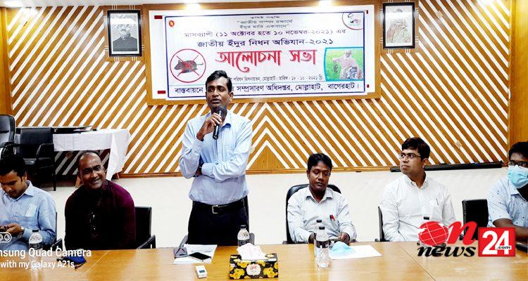 বাগেরহাটের মোল্লাহাটে গতকাল বৃহস্পতিবার (২৮ অক্টোবর) উপজেলা কৃষি সম্প্রসারন অধিদপ্তরের আয়োজনে, উপজেলা পরিষদ মিলনায়তনে“জাতীয় সম্পদ রক্ষার্থে, ইদুর মারি একসাথে’ প্রতিপাদ্যের আলোকে মাস ব্যাপী (১১ অক্টোবর হতে ১০ নভেম্বর) পর্যন্ত জাতীয় ইদুর নিধন অভিযান উদ্বোধন করা হয়েছে।