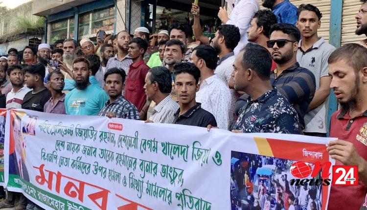 বিএনপি নেতা কর্মীদের উপর হামলা ও মামলার প্রতিবাদে দেবিদ্বারে মানববন্ধন