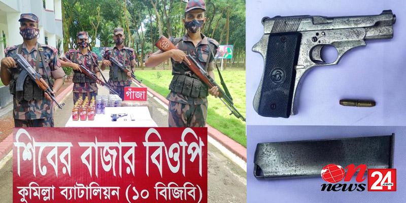 বিজিবি'র কুমিল্লা ব্যাটালিয়নের অভিযানে বিদেশী পিস্তল (ম্যাগাজিনসহ), গুলি, মদ এবং গাঁজা আটক