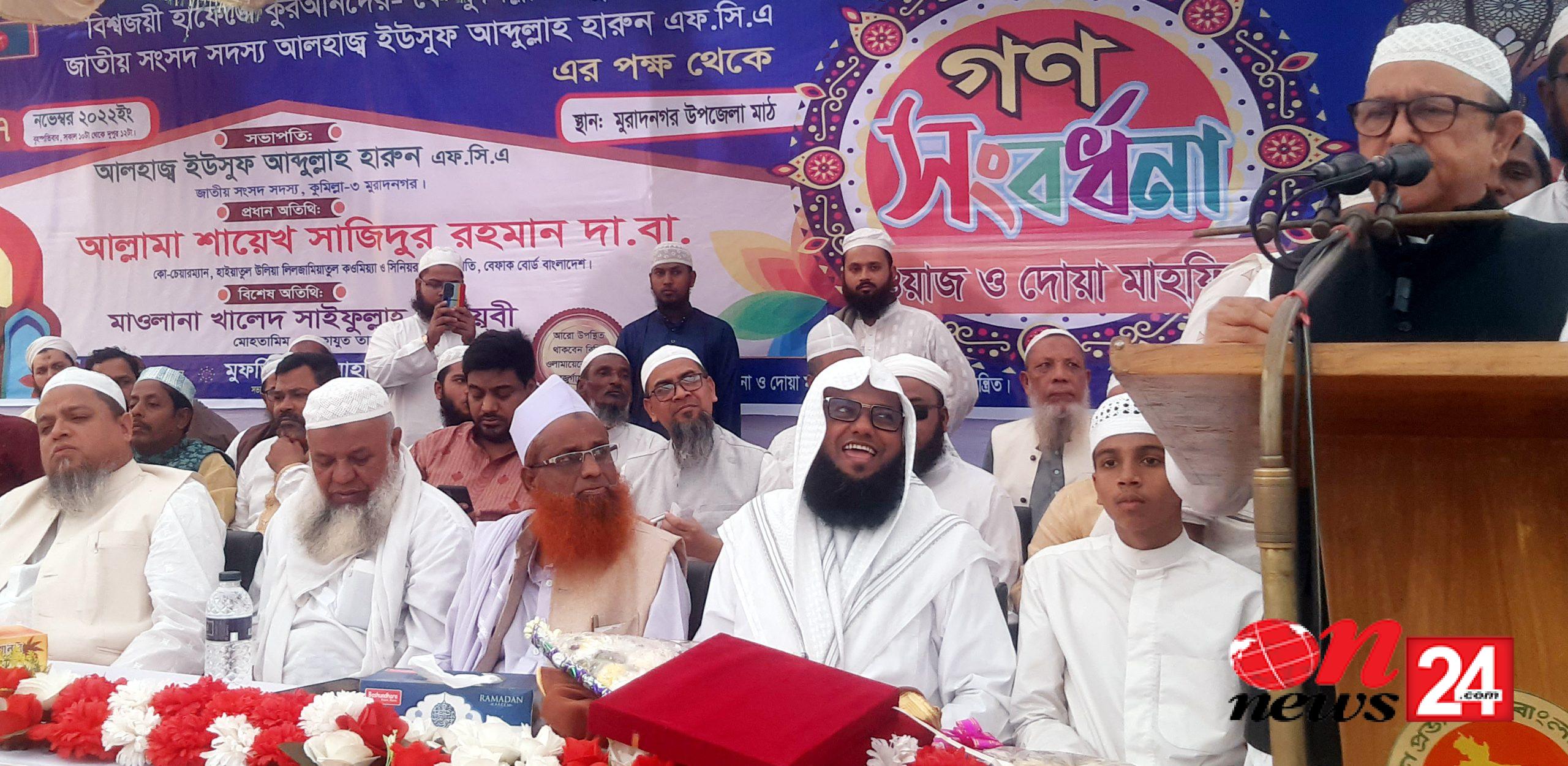 কুমিল্লার মুরাদনগরে বিশ্বজয়ী কোরআনে হাফেজদের সংবর্ধণা দিয়েছেন এফবিসিসিআ’র সাবেক সভাপতি ইউসুফ আবদুল্লাহ হারুন এমপি। বৃহস্পতিবার