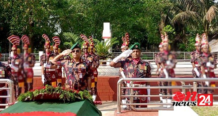 বীরশ্রেষ্ঠ নূর মোহাম্মদ শেখের সমাধিতে শ্রদ্ধা নিবেদন করেছেন বর্ডার গার্ড বাংলাদেশ (বিজিবি) মহাপরিচালক মেজর জেনারেল আশরাফুজ্জামান সিদ্দিকী।