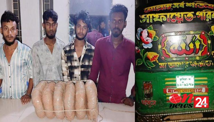বুড়িচংয়ে পুলিশের অভিযানে ১২ কেজি গাঁজাসহ ৪ মাদক ব্যবসায়ী আটক, সিএনজি জব্দ